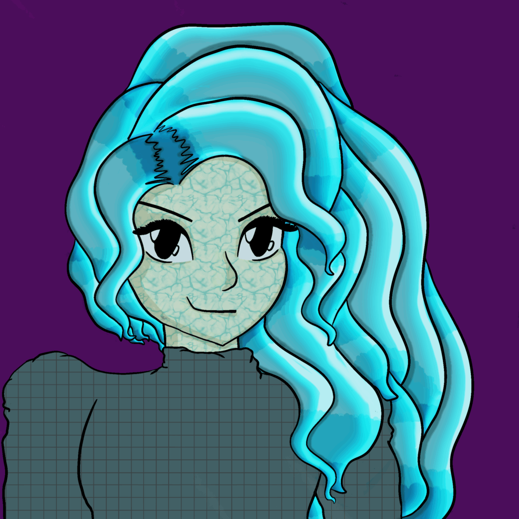 - HAIR COLOR: Dark brown naturally, Cyan when using her energy